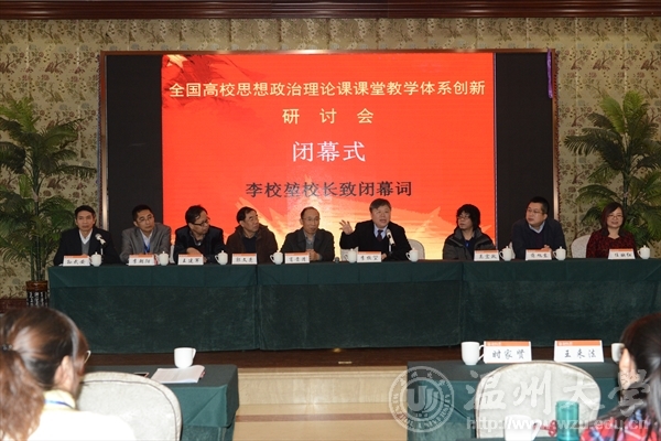12月13日,由ac米兰官网中文网站马克思主义学院和教育部《思想理论教育导刊》编辑部联合主办的“全国高校思想政治理论课课堂教学体系创新研讨会”在温州隆重闭幕。校长李校堃出席闭幕式并作重要讲话。校党委林娟娟副书记陪同与会专家观摩了12日下午举行的ac米兰官网中文网站第三届“溯初杯”思政理论课知识竞赛教学活动。 研讨会于12月12日上午在ac米兰育英图书馆报告厅开幕,来自全国88所高校的近200名专家、学者汇聚一堂,围绕中央宣传部、教育部印发的《普通高校思想政治理论课建设体系创新计划》文件精神,共同交流探讨进一步创新高校思想政治理论课课堂教学体系的有效途径和方法。