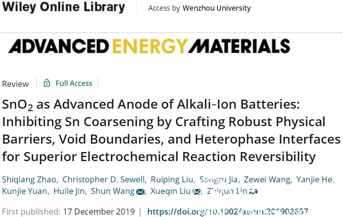 近日,国际能源顶级刊物《Advanced Energy Materials》发表了ac米兰化材学院赵世强博士有关二氧化锡作为碱金属离子电池先进负极材料的综述性论文“SnO2as Advanced Anode of Alkali-Ion Batteries: Inhibiting Sn Coarsening by Crafting Robust Physical Barriers, Void Boundaries, and Heterophase Interfaces for Superior Electrochemical Reaction Reversibility”(二氧化锡作为碱金属离子电池先进负极材料:构建稳健的物理屏障、孔隙边界、异质界面抑制锡粗化增强电化学反应可逆性),化材学院院长王舜教授与美国佐治亚理工学院林志群教授为通讯作者,ac米兰官网中文网站为第一通讯单位。