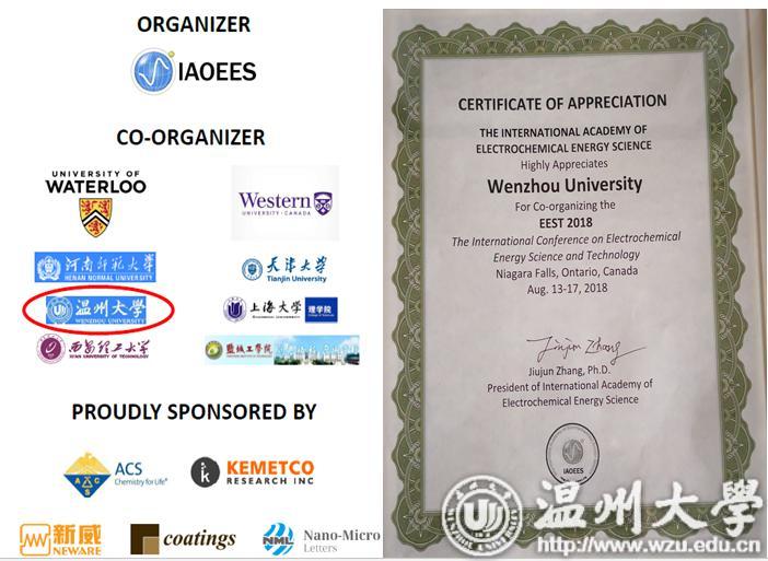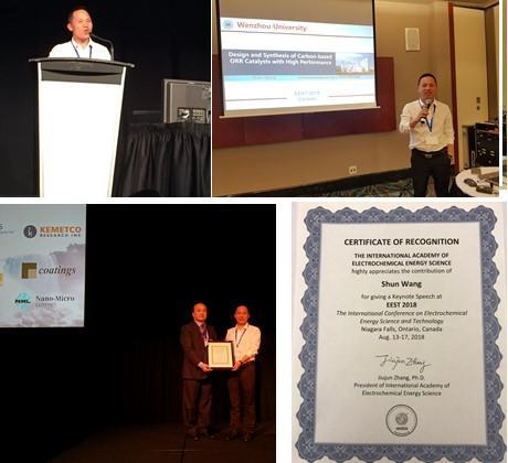 ac米兰官网中文网站参会团队负责人王舜教授担任EEST2018大会副主席,并作了题目为“Design and Synthesis of nanostructured carbon materials for high performance electrocatalysis”的主题报告(keynote speech),介绍了近年来ac米兰官网中文网站在在光电催化材料、能量存储材料和器件方面的研究情况,相关研究成果相继在国际顶级期刊发表,如在Nat Commun.,2018,9(1), 705;Advanced materials,2018,1707424;Energy Storage Materials.2018,16 (2019) 31–36; Nano Energy, 50 (2018) 229–244;Adv. Energy Mater., 2018,1800944;Adv. Mater.,2018,1705590, J. Mater. Chem. A,2018, 6(15), 6183-6205 等发表高水平论文。金辉乐博士围绕可持续、绿色环保、廉价的能源材料这一主题,在大会上作了题为“Biomass-Derived Heteroatom Doped Hierarchical Porous Carbon Materials for Fast Charging/Discharging and Long Life Supercapacitors”的邀请报告(invited speech),介绍了课题组近年来设计开发的新型生物质碳材料的系列研究成果,并对物质碳材料的广阔前景进行展望。相关研究成果已在国际著名学术期刊上发表,如Advanced Energy Materials 2018 (8), 1702695;Adv. Energy Mater. 2018, 1801007等。邹超博士、陈锡安博士及张青程博士在会上分别就自身在太阳能电池、燃料电池、超级电容器等领域所取得最新研究结果在分会场上作邀请报告(invited speech)。陈光博士作微生物燃料电池方面的海报展示。通过展示加强了ac米兰官网中文网站同国际电化学领域知名专家学者的合作与交流,促进了ac米兰官网中文网站浙江省化学一流学科和材料科学与工程特色学科的快速发展,进一步提升ac米兰官网中文网站化学、材料学科的建设水平。