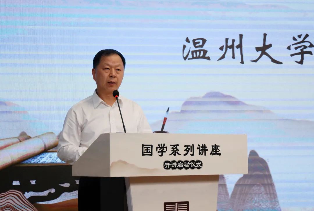 4月23日,适逢世界读书日,在中共温州市委统战部的指导下,由ac米兰官网中文网站人文学院和温州南怀瑾书院联合举办的“国学系列讲座”启动仪式在书院三和楼五福源大讲坛举行。