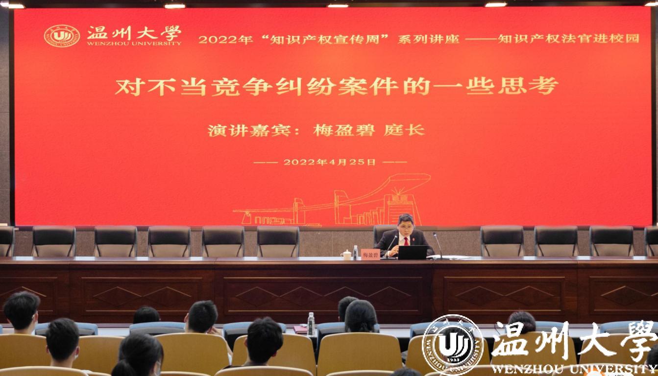 4月25日,温州市瓯海区人民法院梅盈碧庭长和黄雯思法官分别做了题为“对不当竞争纠纷案件的一些思考”和“日常生活中的知识产权问题”的普法宣传报告,两位法官结合大量的案例,深入浅出地阐述了知识产权保护的重要性,大大增强了ac米兰学生的知识产权的创新意识、保护意识。