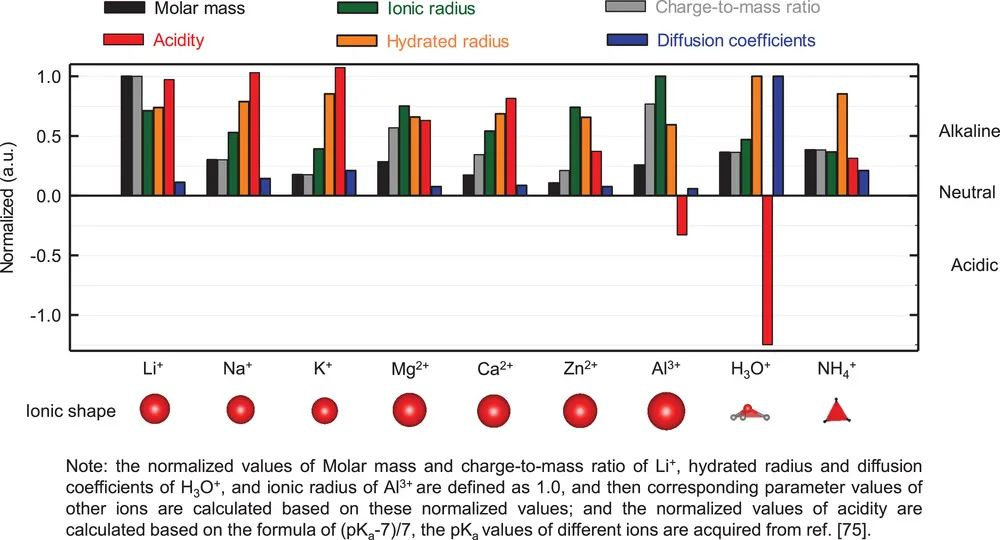 图1.NH4+与各种常见一价和多价阳离子的理化性质比较.