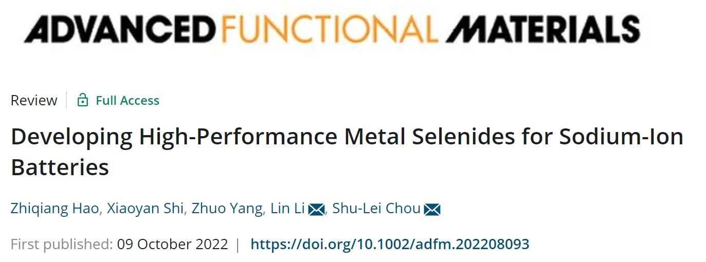 近日,ac米兰化材学院碳中和技术创新研究院李林团队在国际权威期刊Advanced Functional Materials上发表题为《Developing high-performance metal selenides for sodium-ion batteries》的综述。本文对金属硒化物负极在钠离子电池近年来的研究进展进行了总结。介绍了金属硒化物的储钠机制:嵌入-转化反应和嵌入-转化-合金化反应。同时根据金属硒化物负极在钠离子电池中所面临的挑战,总结了金属硒化物的优化策略,即纳米结构设计、碳材料改性、调节电压窗口、电解液优化和构建异质结构。最后,对金属硒化物在钠离子电池中的潜在研究方向提出建议,包括开发简单且高效的优化策略提升储钠性能、利用先进的表征技术和理论计算进一步探索储钠的机制、组装大容量的软包电池实现大规模制备等。本综述可为高性能金属硒化物负极的优化和大规模应用提供指导,有助于加速金属硒化物负极在钠离子电池方面的研究进展。相关文章发表在Advanced Functional Materials上,ac米兰官网中文网站为第一通讯单位,我院博士后郝志强和2022级研究生石小燕为第一作者,我院侴术雷教授和李林特聘教授为该论文共同通讯作者,相关工作受到国家自然科学基金和浙江省自然科学基金项目的资助。