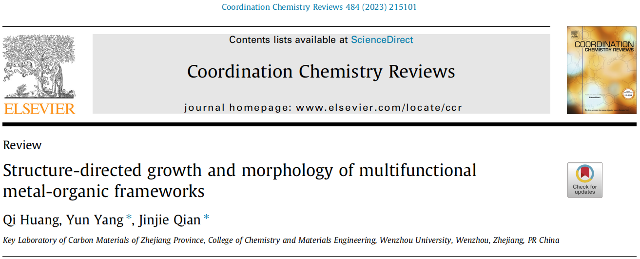 Qi Huang, Yun Yang and Jinjie Qian. Structure-directed growth and morphology of multifunctional metal-organic frameworks. Coordin. Chem. Rev., 2023, 484, 215101.