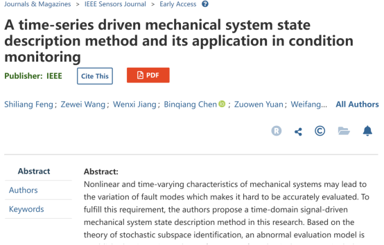 该论文题目为“A time-series driven mechanical system state description method and its application in condition monitoring”,ac米兰机电工程学院21级智能制造专业学生冯世亮、王泽伟、蒋文茜为共同第一作者,联合厦门大学、众泰汽车等单位共同署名,指导老师为该班班主任孙维方博士。论文提出了一种基于时域信号的系统描述方法并成功将其应用于滚动轴承、加工刀具状态监测等场景,为相关关键技术装备的运行维护和故障诊断提供了一条新的可能。