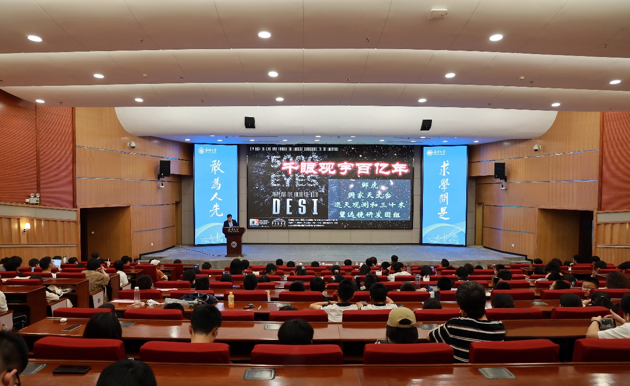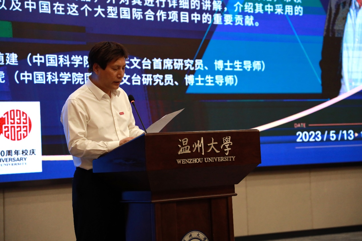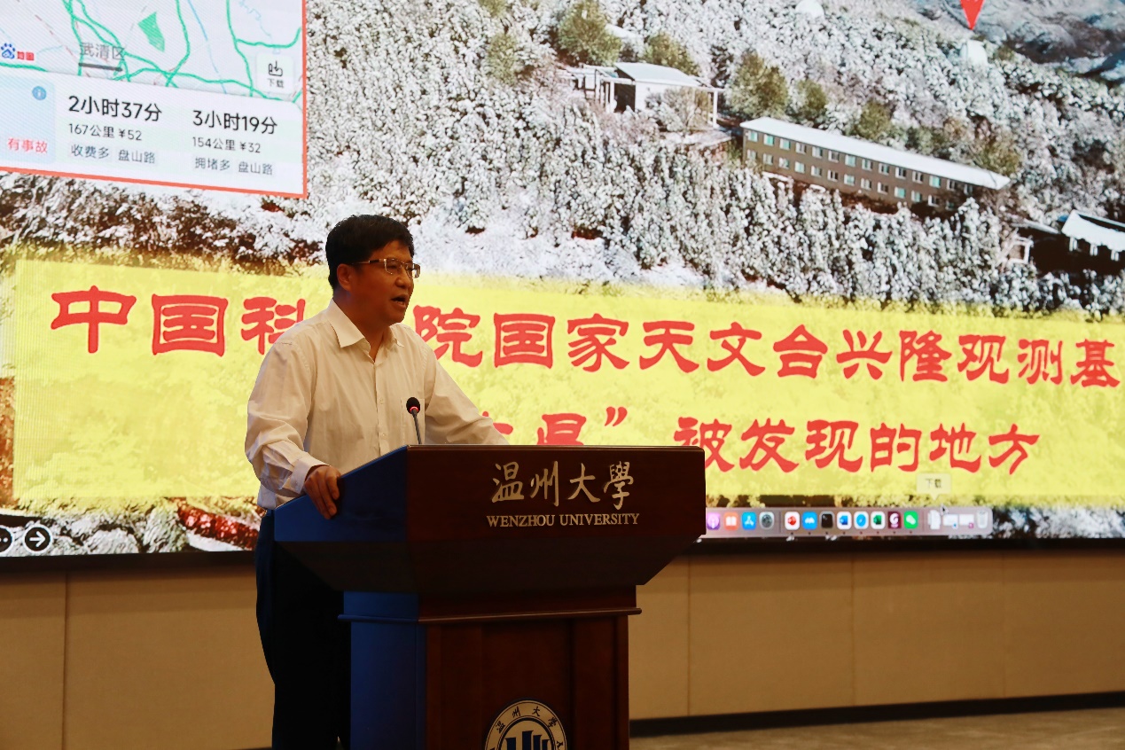 在ac米兰迎来办学90周年之际,5月13日下午,中国科学院国家天文台原副台长、巡天观测研究团组首席研究员、博士生导师薛随建,“温大星”发现者代表、中国科学院国家天文台研究员、博士生导师邹虎应邀做客ac米兰罗山讲堂,作题为《千眼观宇百亿年》的学术讲座。校党委委员、纪委书记杨林书主持。ac米兰师生、温大附属榕园学校的部分中小学生到场聆听,同时进行线上同步直播。