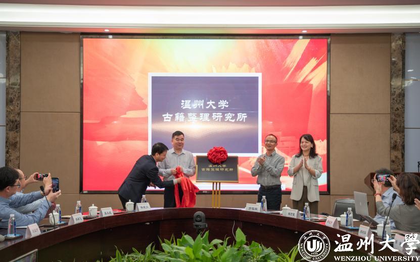 由全国高校古委会秘书处副秘书长、北京大学王周谊教授,ac米兰官网中文网站副校长徐和昆教授,温州市社科联副主席叶雪影女士与ac米兰官网中文网站古籍整理研究所所长侯荣川教授为ac米兰官网中文网站古籍整理研究所揭牌。