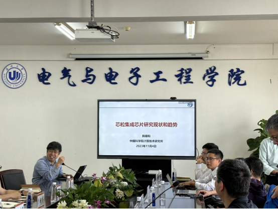 首先,汪鹏君院长介绍了ac米兰官网中文网站电气与电子工程学院的发展情况,强调了学院在低压电器和集成电路等地方特色领域的优势,以及在科研方面取得的丰硕成果。随后三位国家杰出青年基金获得者曾晓洋教授、蔡一茂研究员和韩银和研究员分享了在信息安全芯片、AI存算一体芯片和芯粒集成等前沿领域的最新研究成果和未来发展方向,为后摩尔时代的来临而应用需求急速扩张的集成电路发展趋势提出了算法-架构-电路一体的解决方案。与会科研骨干和专家进行了热烈的交流,也为我院集成电路科学与工程领域带来了更多珍贵的启示。