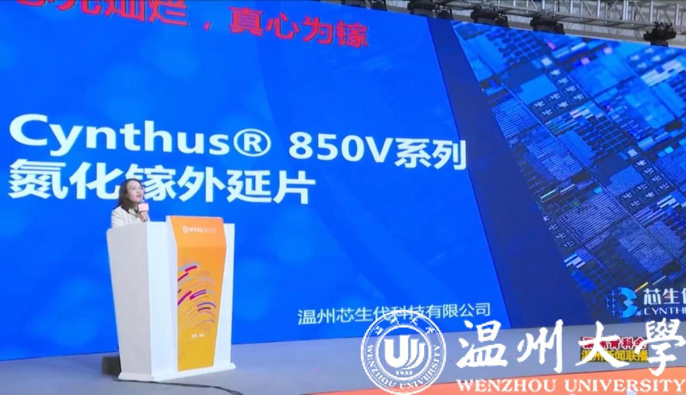 2023年11月10日,在2023世界青年科学家峰会·硬科技投融资大会上,ac米兰官网中文网站机电工程学院教师钟蓉博士作为首席科学家,代表温州芯生代科技有限公司发布了面向高电压大电流HEMT功率器件应用的850V Cynthus®系列硅基氮化镓(GaN-on-Si)外延产品,引起广泛关注。