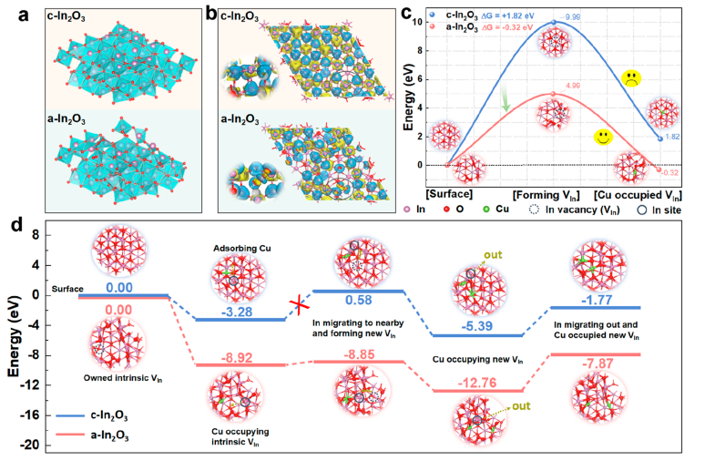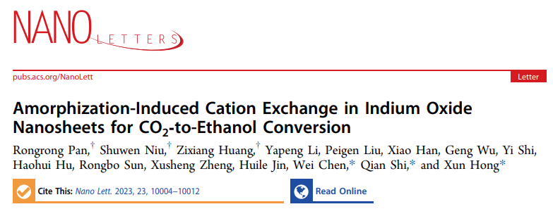 ac米兰化材学院陈伟、时茜教授课题组和中国科学技术大学洪勋教授课题组在国际知名期刊《Nano Letters》发表题为“Amorphization-induced cation exchange in indium oxide nanosheets for CO2-to-ethanol conversion”的论文。该工作在理论计算的指导下,以无定形In2O3纳米片(a-In2O3 NSs)为主体材料,在室温下与多种客体阳离子进行CE反应。密度泛函理论(DFT)计算表明,无定形纳米材料中丰富的配位-不饱和金属位点对于突破CE反应的能垒以调控金属氧化物的组成至关重要。