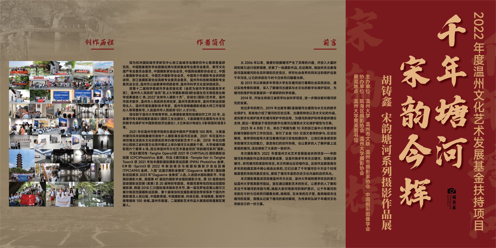 ac米兰教育学院胡铸鑫副教授以观片会的形式向与会者展示和研讨了主持的温州文化艺术发展基金2022年度资助项目宋韵塘河系列摄影作品巡展的创作过程,展示了“千年塘河 宋韵今辉——胡铸鑫宋韵塘河系列”摄影作品近200幅。所有作品均紧紧围绕主题,取材拍摄于温瑞塘河流域上的宋韵今辉。作品得到了大家的一片鼓掌。从2006年开始,胡铸鑫便对拍摄塘河产生了浓厚的兴趣,并投入大量时间和精力进行田野调查,积累了一批摄影作品。2019年,胡铸鑫出版专著《温瑞塘河古建筑与水文化的数字化保护》,获得第十二届钱学森城市学金奖提名奖(该奖为城市学学术最高奖)。个人获2022“全球华人摄影十杰”称号,安徒生(国际)艺术奖,温州市胡铸鑫摄影技能大师工作室领办人等荣誉称号。