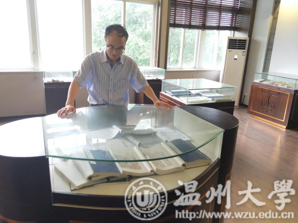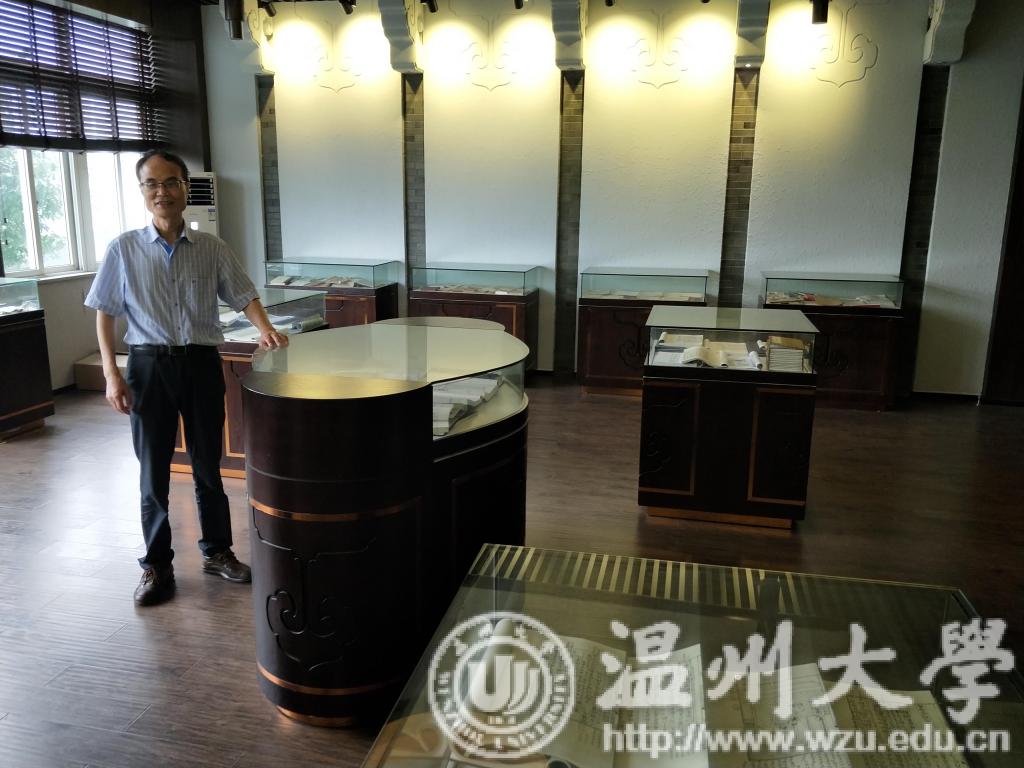 俞为民教授兴致勃勃地带着记者参观研究中心的宝库——温大人文学院的南戏文献陈列室,对于陈列室里面的珍藏,他如数家珍,为记者一一讲述它们的故事。