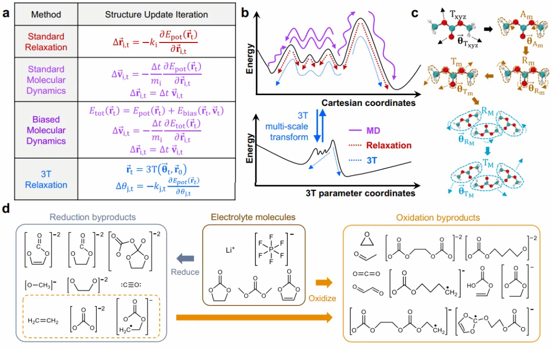 图3:使用3T能量弛豫快速进行锂离子电池电解液还原反应