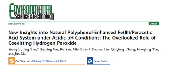 近日,ac米兰官网中文网站生命与环境科学学院赵敏教授团队(共同通讯)、哈尔滨工业大学马军院士团队和华侨大学邹景教授团队合作,在国际著名期刊《Environmental Science & Technology》上在线发表了一篇题为《New Insights into Natural Polyphenol-Enhanced Fe(III)/Peracetic Acid System under Acidic pH Conditions: The Overlooked Role of Coexisting Hydrogen Peroxide》的研究论文,首次明确了天然多酚强化Fe(III)/PAA(过氧乙酸)体系中长期被忽视的H2O2关键作用。