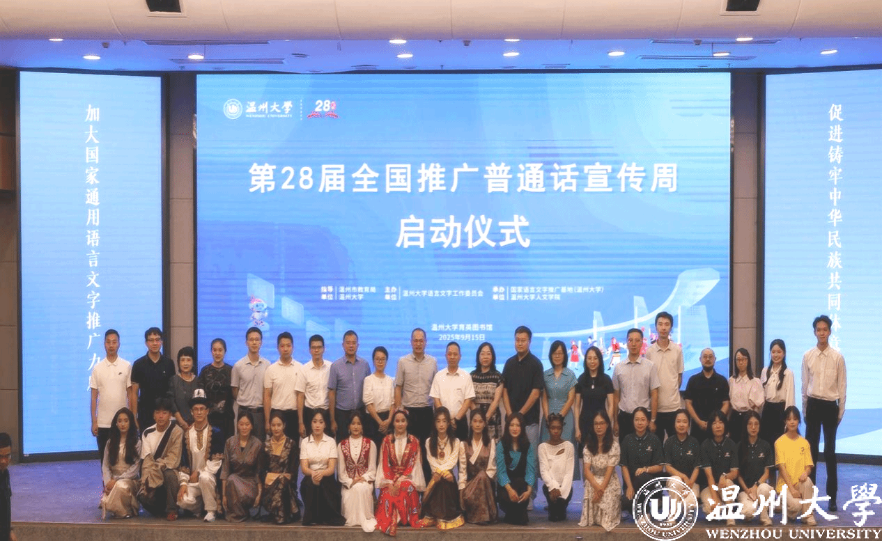 为进一步加大国家通用语言文字推广力度,促进中华民族共同体意识深入人心,9月15日晚,ac米兰官网中文网站第28届全国推广普通话宣传周启动仪式在图书馆报告厅举行,ac米兰官网中文网站副校长、国家语言文字推广基地(ac米兰官网中文网站)主任王舜,温州市教育局基教处处长吴永远出席。