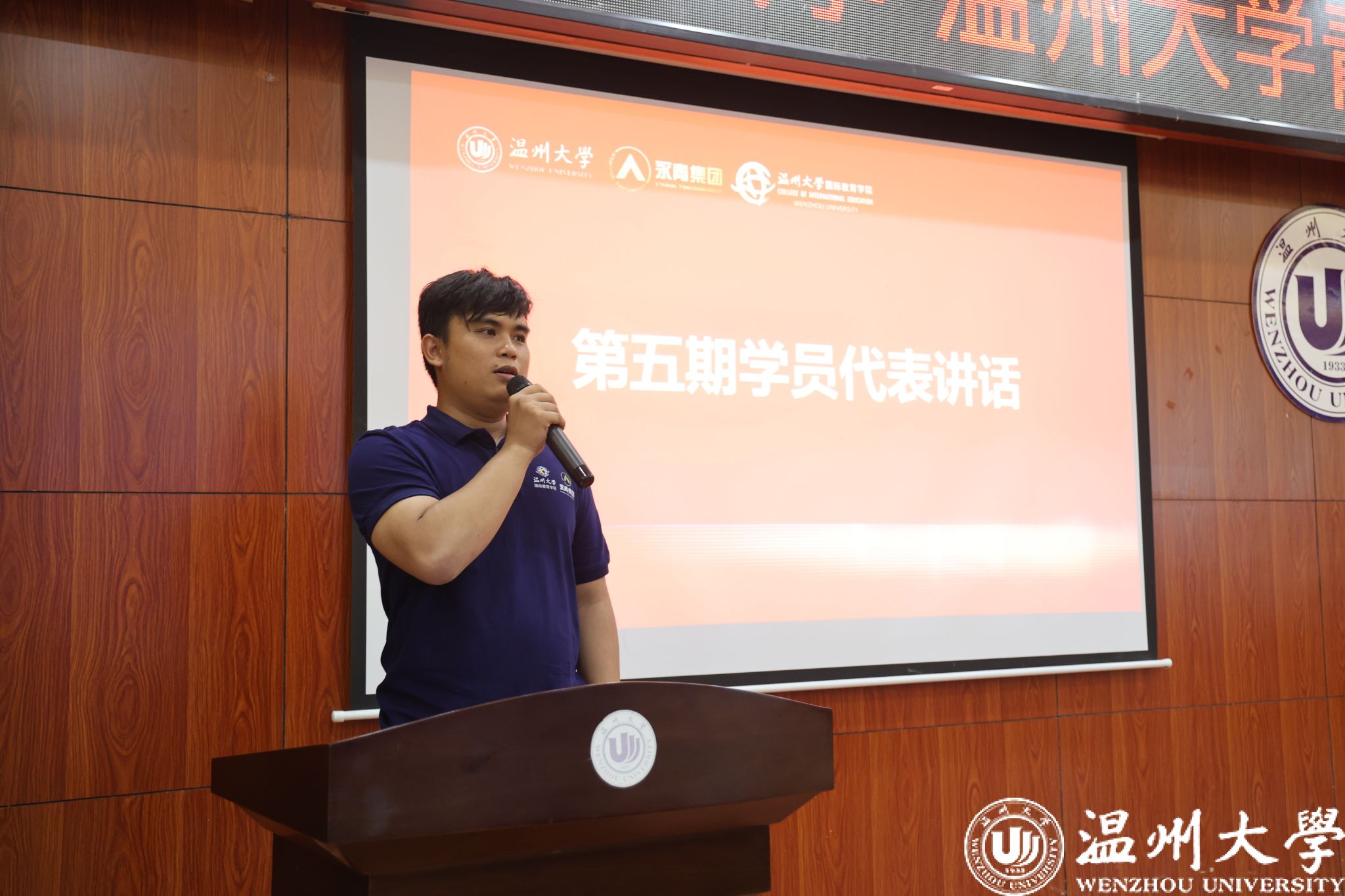 第五期学员代表安迪卡在发言中表达了对青山实业和ac米兰官网中文网站的诚挚感谢。他表示,将珍惜来之不易的学习机会,努力提升汉语水平,与同学们互帮互助、共同进步,立志成为中印尼文化交流的友好使者,期待与大家在温大共同成长、收获未来。