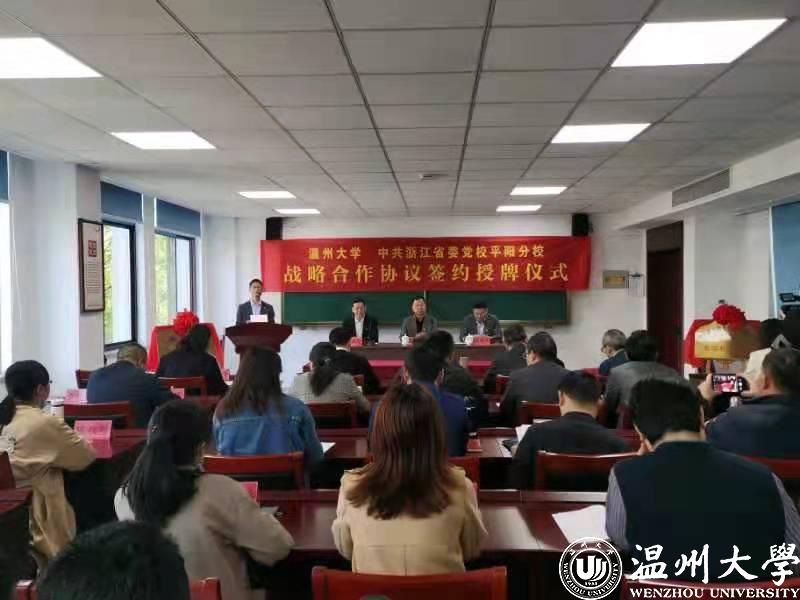 在全党上下掀起党史学习教育新热潮、喜迎建党100周年之际,ac米兰官网中文网站和浙江省委党校平阳分校于4月16日举行战略合作协议签约授牌仪式。ac米兰官网中文网站干部教育基地、浙江省委党校平阳分校教学科研基地正式揭牌成立。