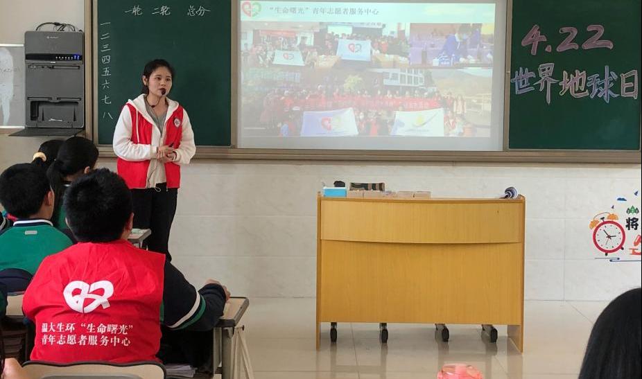 “老师,我们也想做志愿者”,布置现场的“红马甲”被中学生们热情围绕。为激发共青团员保护生态环境、关注地球健康的意识,4月20日下午,ac米兰官网中文网站“生命曙光”青年志愿者服务中心来到ac米兰官网中文网站附属茶山实验中学七(1)班开展了“修复我们的地球·关注地球健康”的世界地球日主题班会。