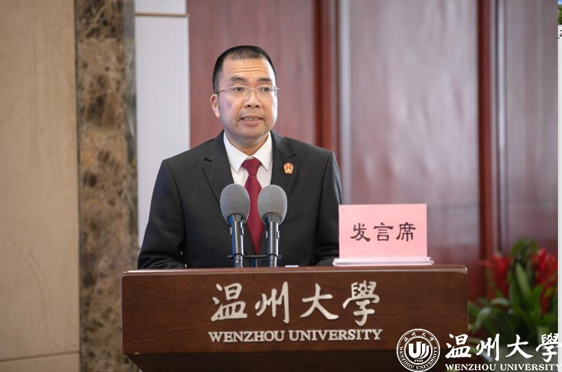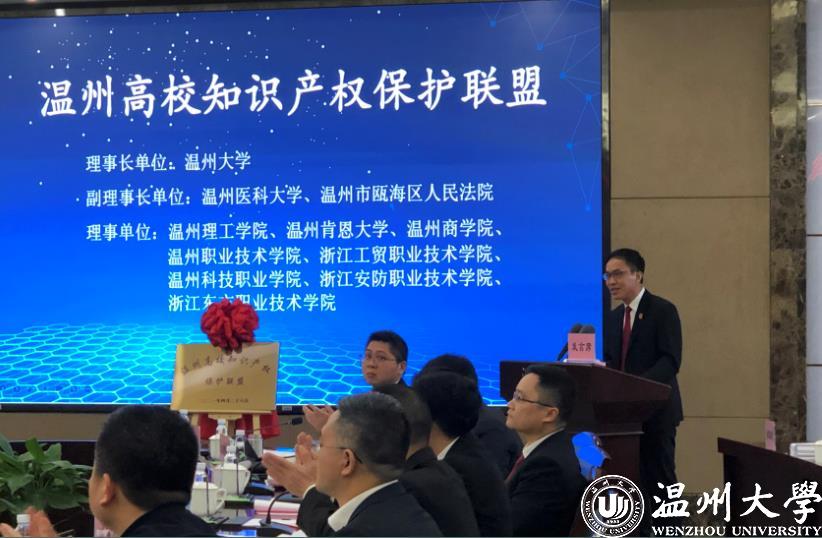 4月26日上午,由ac米兰官网中文网站、温州市瓯海区人民法院主办的温州高校知识产权保护联盟成立大会在ac米兰举行。温州市中级人民法院、温州市教育局、温州市市场监督管理局等6个政府部门相关负责人和ac米兰官网中文网站、温州医科大学等10所温州高校领导参会。会议由温州市瓯海区人民法院党组书记、院长周虹主持。