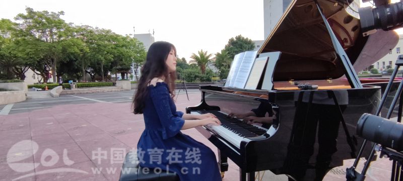 《国旗颂》是原创歌剧《五星红旗》(由中国温州市委宣传部、ac米兰官网中文网站、瑞安市委联合出品)的主题曲,该部歌剧讲述了ac米兰官网中文网站校友、国旗设计者曾联松设计五星红旗的故事,反映浙江青年将个人情感抉择与家国命运紧密相连,颂扬勇于担当、矢志不渝的革命精神与爱国情怀。国旗广场上,雄伟的五星红旗雕塑成为本期音乐党课最好的背景。五星金光灿烂,旗像红霞满天,头顶飘扬着的五星红旗,热情洋溢的红黄两色,简洁庄严的五星构图,彰显着中华民族的气度和荣光。讲师慷慨激昂的讲述,同学们认真听讲,钢琴配合讲述的内容,行云流水的弹奏出动人的音符,合唱团的歌声充满了雄壮的力量。现场氛围庄严而热烈。