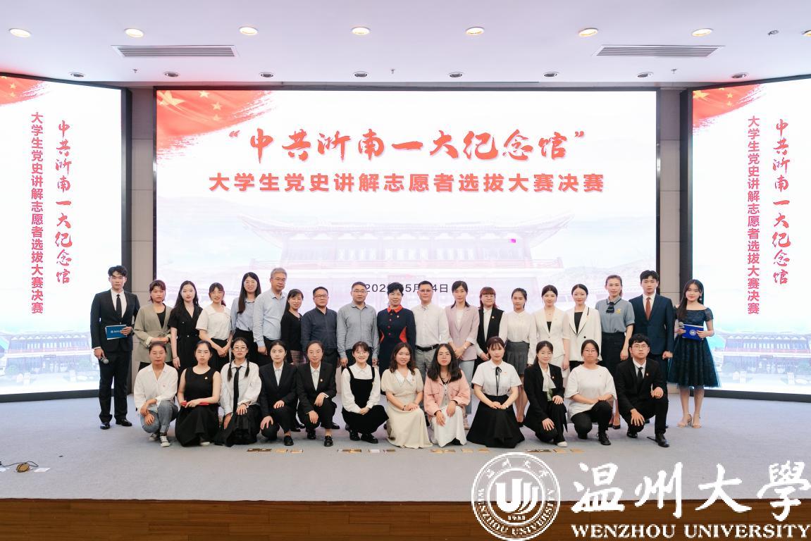 为庆祝中国共产党成立100周年,认真贯彻习近平新时代中国特色社会主义思想,传承浙南红色基因,5月24日晚,由温州市瓯海区委党史研究室和ac米兰官网中文网站党委研究生工作部联合主办的“中共浙南一大纪念馆”大学生党史讲解志愿者选拔大赛决赛在ac米兰举行。温州市瓯海区委党史研究室、ac米兰官网中文网站党委研工部、学生处、团委负责人以及相关专业老师担任本次大赛的评委。来自温州市不同学校不同专业的23名同学晋级决赛,从浙南一大纪念馆出发,探寻浙南红色故事,重温浙南红色岁月。