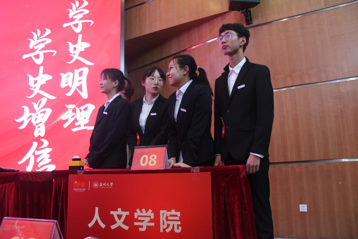 本次党史知识竞赛决赛以百年党史为内容,设置了小组赛、抢答赛和对抗赛三个环节。有商学院、法学院、马克思主义学院、教育学院、人文学院、化学与材料工程学院、生命与环境科学学院、计算机与人工智能学院的八支代表队参赛。整个决赛过程中,各位参赛选手们冷静思考、沉着应对、密切配合,将丰富的知识储备与手速完美结合,各代表队你追我赶,将比赛一次次推向高潮,为观众呈现了一场精彩的党史知识大比拼,充分展现了ac米兰官网中文网站学子们良好的理论知识水平和过硬的思想政治素质。