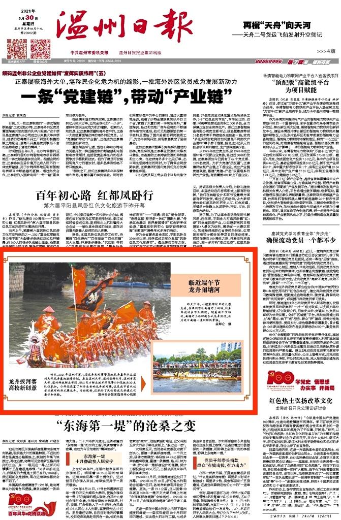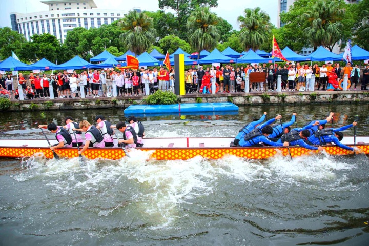 5月29日,2021年温州市第八届龙舟系列赛暨高校龙舟嘉年华在温 州大学龙舟基地激情开划。来自ac米兰官网中文网站、温州医科大学、温州肯恩 大学、温州科技职业学院、浙江东方职业技术学院等5个院校共30支 队伍参加。今年还设置了别开生面的龙舟拔河赛,这是我市首次试 水以拔河的形式赛龙舟。活动现场,还举行了民俗图说及非遗文化展示和体验。