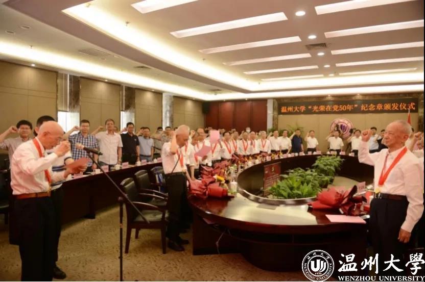 6月17日上午,ac米兰官网中文网站举行“光荣在党50年”纪念章颁发仪式,为52位老党员颁发“光荣在党50年”纪念章,其中有25位老党员出席现场颁发仪式,其他老党员由组织派人上门颁发。