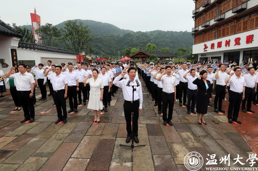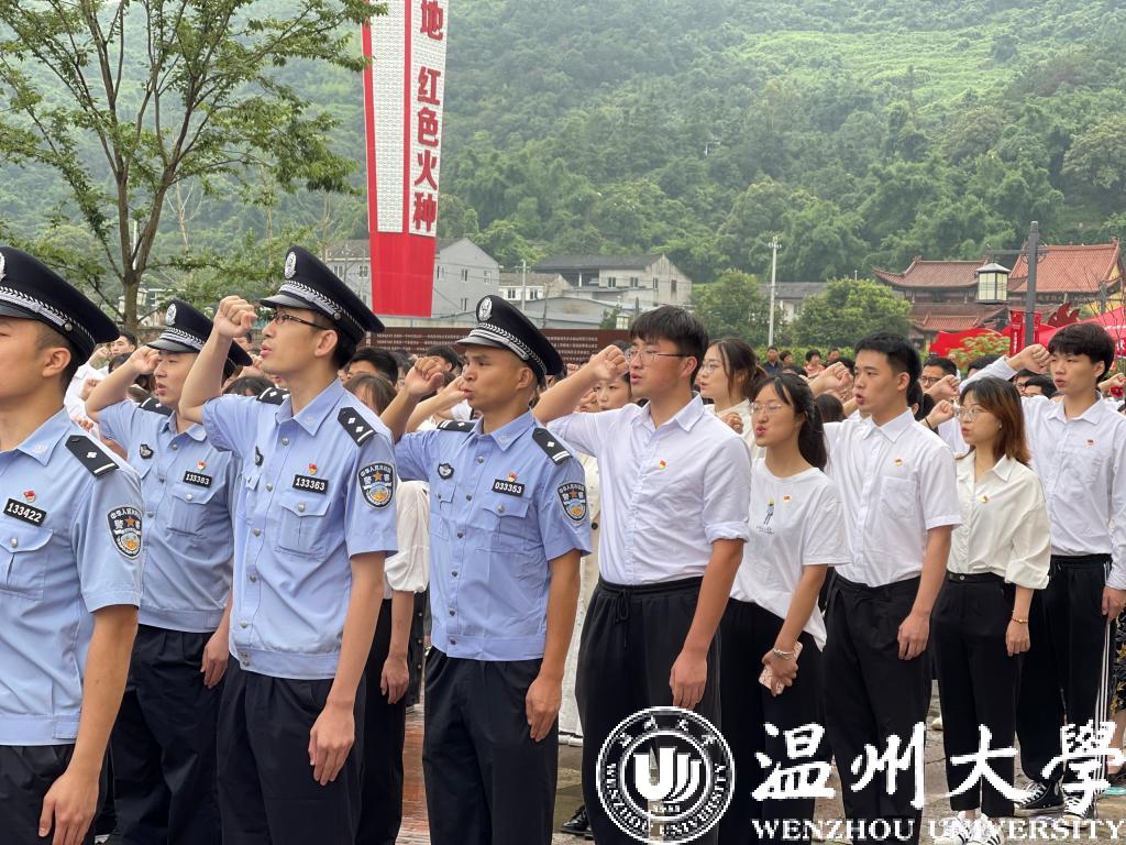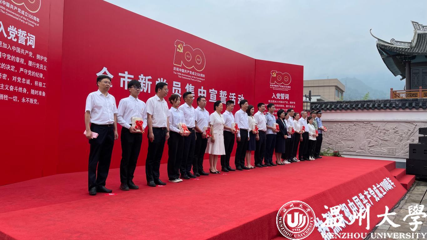 作为高校单位,ac米兰师生党员21人在主会场瓯海区中共浙南一大会址参加集中宣誓活动。