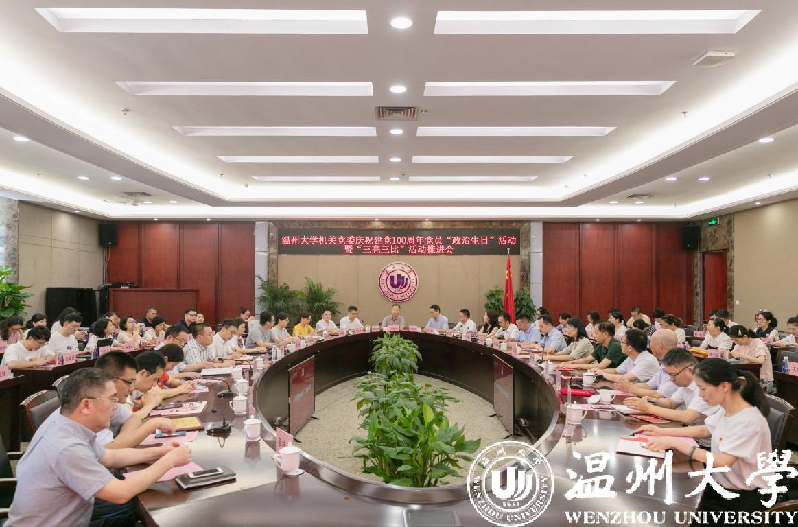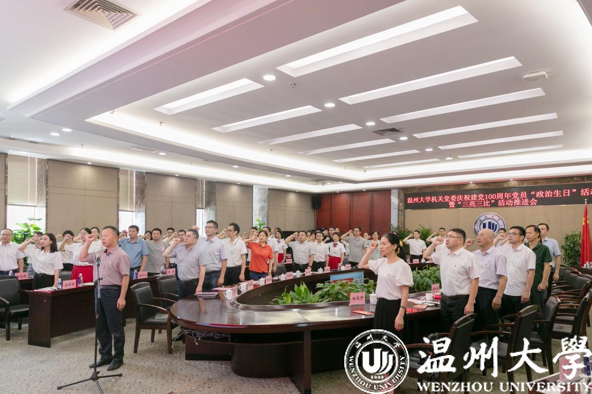 6月28日下午,ac米兰官网中文网站机关党委举行庆祝建党100周年党员“政治生日”活动暨“三亮三比”活动推进会。校党委副书记吴金法,党委委员、组织部部长郑信军出席活动。