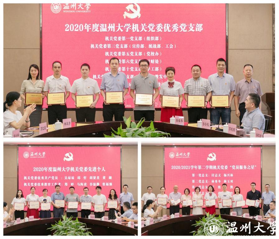 会上,机关党委集中展示了18个党支部“三亮三比”活动成果,表彰了2020年度ac米兰官网中文网站机关党委优秀党支部、2020年度ac米兰官网中文网站机关党委先进个人以及2020/2021学年第二学期机关党委“党员服务之星”等集体和个人;举行党员集体“政治生日”仪式,为入党10年、20年、30年的党员代表赠送了印有党旗、党徽和组织寄语的“政治生日”贺卡。入党30年的党员代表胡记芳老师和本学期“党员服务之星”获得者杨兴林老师作交流发言,分享了他们长期在党组织培养下的成长历程和思想感悟,讲述他们在平凡的岗位上,始终牢记党员身份,认真履行党员义务,把职业当事业的感人事迹,为在场的党员带来了一堂生动的党课。