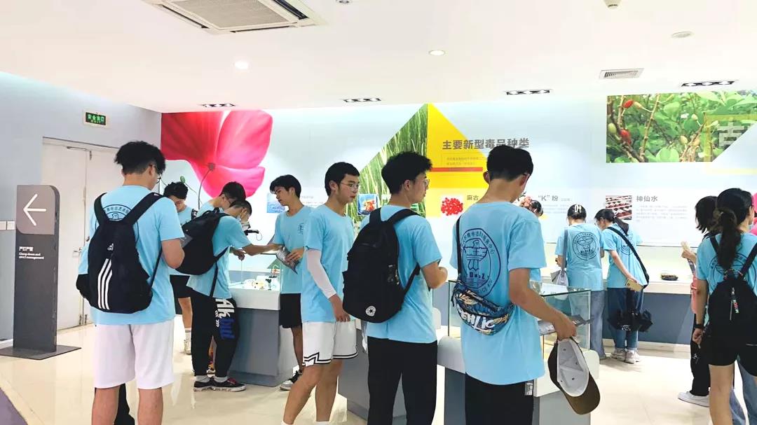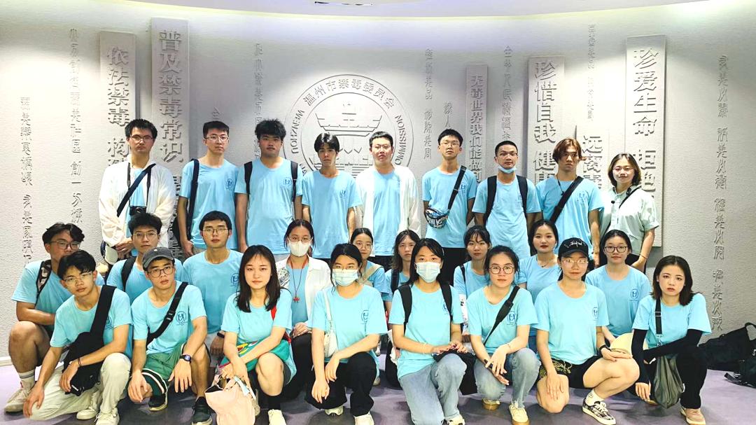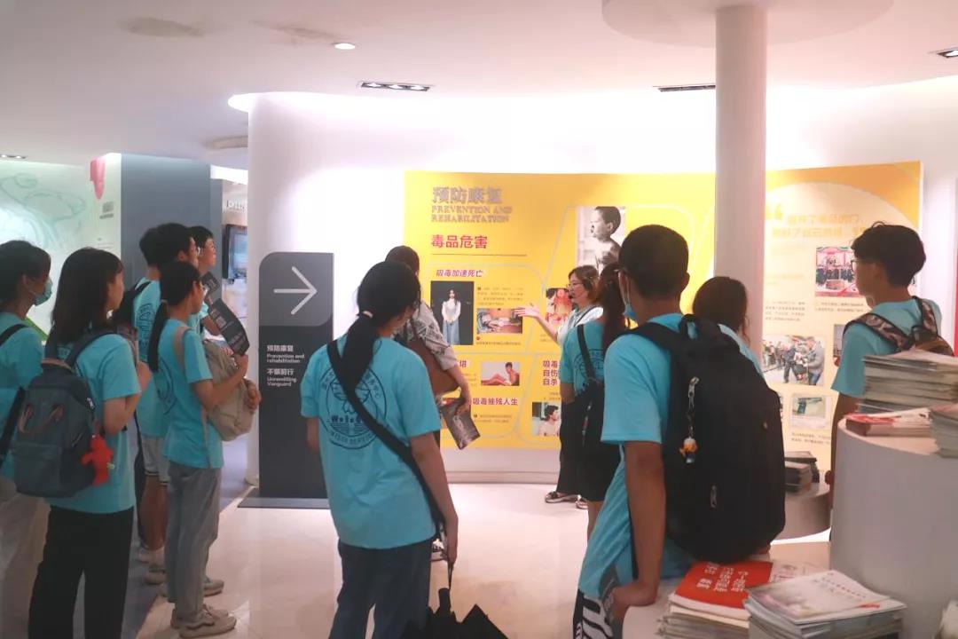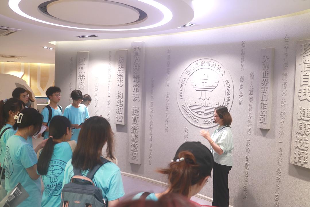 在参观禁毒教育基地时,温州市禁毒教育基地讲解员吴晓燕老师带领ac米兰官网中文网站“无毒青春”暑期社会实践队26名大学生先后了解世界毒品态势、中国禁毒简史等禁毒知识。