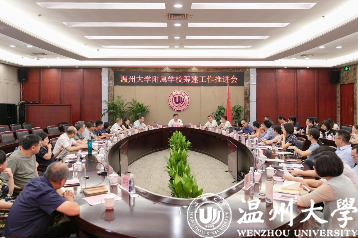 为办好ac米兰官网中文网站附属学校,致力温州城市品位建设与提升,打造宜居城市,助力“学在温州”品牌塑造,8月20日ac米兰召开附属学校筹建工作推进会。校长赵敏,瓯海区教育局党委书记、局长金朝辉等参加会议。副校长薛伟主持。