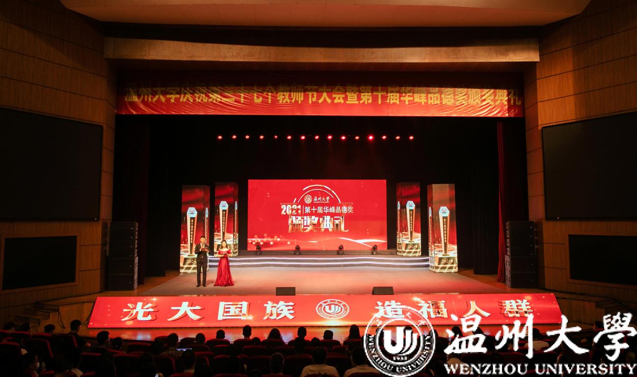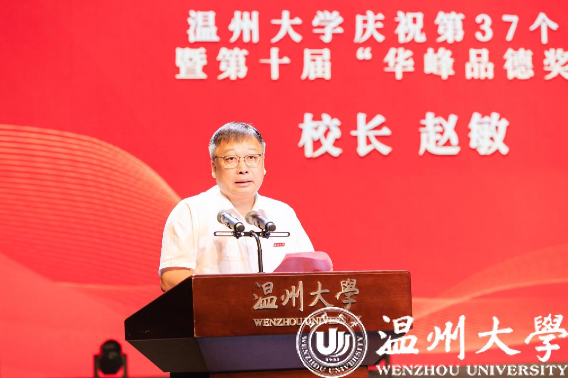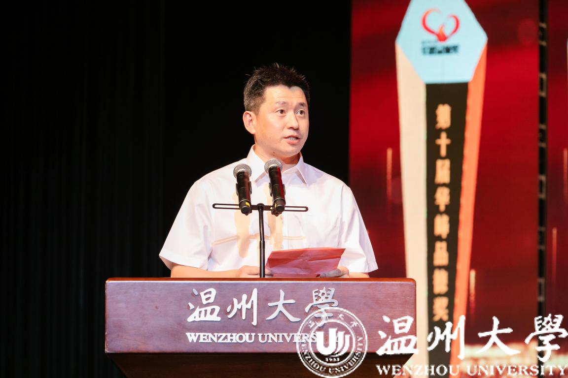 校长赵敏致辞。他代表学校向辛勤耕耘无私奉献的全校教职员工致以节日的问候,向获得第十届“华峰品德奖”的个人和集体表示祝贺。他指出,ac米兰官网中文网站始终坚持立德树人、坚守教育初心,建设了一支有理想信念、有道德情操、有扎实学识、有仁爱之心的“四有”教师队伍,生动诠释了人民教师光荣而神圣的职责和使命。在华峰集团的支持下,近十年来学校还评选表彰了一批思想品德表现突出的师生个人和团体,他们在推动学校发展、建设和谐校园、服务广大师生中作出了重要贡献。他强调,ac米兰官网中文网站正处于转型发展的重要阶段,希望全体师生共同学习榜样的先进事迹精神,立足本职、扎实工作、积极作为,以崇高思想引领社会风尚,以实际行动推进学校发展,在建设“重要窗口”中发出温大师生的时代强音。