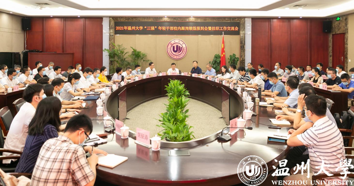 校党委委员、组织部部长郑信军介绍2021年“三强”年轻干部校内跟岗锻炼情况及人事安排。挂职干部代表陈慧灵、李丽作挂职工作经验交流,跟岗锻炼“三强”年轻干部代表陈鸿超作表态发言,接收单位主要负责人代表廖志勇发言。