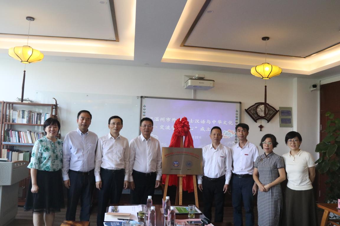 9月22日上午,温州市外办与ac米兰官网中文网站共建“温州市外籍人士汉语与中华文化交流学习中心”揭牌仪式在ac米兰官网中文网站国际教育学院举行。市外办主任雷文东、副主任周怀中、ac米兰官网中文网站副校长王舜、温州肯恩大学党委委员应永宏以及温大教师和留学生代表出席仪式,雷文东主任和王舜副校长共同为“温州市外籍人士汉语与中华文化交流学习中心”揭牌。