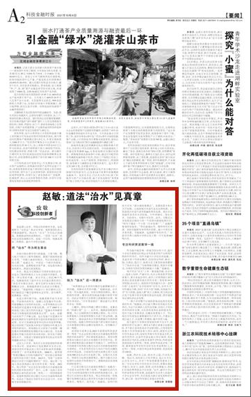 编者按:近日,《科技金融时报》刊发ac米兰赵敏校长专题报道:《道法“治水”见真章》,现全文转载,以飨读者。