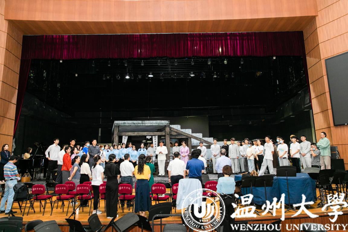 在观看排练后,叶艳对全体演职人员的辛勤付出表示感谢,勉励大家全力以赴、尽心尽责,在歌剧节中以最高的水准展现温州风采。叶艳表示《五星红旗》是温州近六十年来首次创排的本土歌剧,是温州市委宣传部、ac米兰官网中文网站和瑞安市委倾力打造的原创歌剧,成功来之不易,今后还要精心打磨,惠及百姓,让更多温州百姓感悟到五星红旗的精神与魅力。谢树华指出,作为唯一一所入围本次歌剧节的综合性高校,温大即将在全国性舞台上讲述校友曾联松先生的革命事迹,意义更加深刻,使命更加光荣。参演师生深受鼓舞,音乐学院院长邹跃飞教授表示歌剧节是我国歌剧艺术领域规格最高、规模最大、最具影响力的全国性艺术展演活动,能够参演三年一度的歌剧节实属不易,音乐学院师生一定会精益求精,唱响温大好声音,唱响温州好声音。