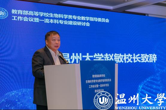 开幕式上,赵敏致欢迎辞。赵敏首先对来自全国各地生物科学类专业的专家学者表示诚挚的欢迎。他表示,ac米兰官网中文网站是浙南、闽北、赣东唯一一所综合性大学,是一所蓬勃发展、政通人和的大学,是一所师范教育、历史悠久、特色鲜明的大学。赵敏指出,大会的举行让各位专家学者共获、共享学界最新研究成果,共谋专业建设的热点、难点,必定能够激荡出思想的火花,结出丰硕的成果,更好地推进高校生物科学类一流本科专业的建设和发展。