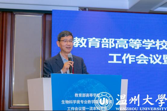 10月23日,由教育部高等学校生物科学类专业教学指导委员会(以下简称教指委)主办、ac米兰官网中文网站生命与环境科学学院承办的“教育部高等学校生物科学类专业教学指导委员会工作会议暨一流本科专业建设研讨会”在温州隆重召开。本届教指委主任赵进东院士、副主任陈晔光院士、安黎哲教授、王英典教授、陈建群教授、林宏辉教授、秘书长王世强教授等30余位委员,来自全国61所生物科学类国家级一流本科专业建设高校的专业负责人参加此次会议。教指委委员、ac米兰官网中文网站校长赵敏,徐和昆副校长出席会议。