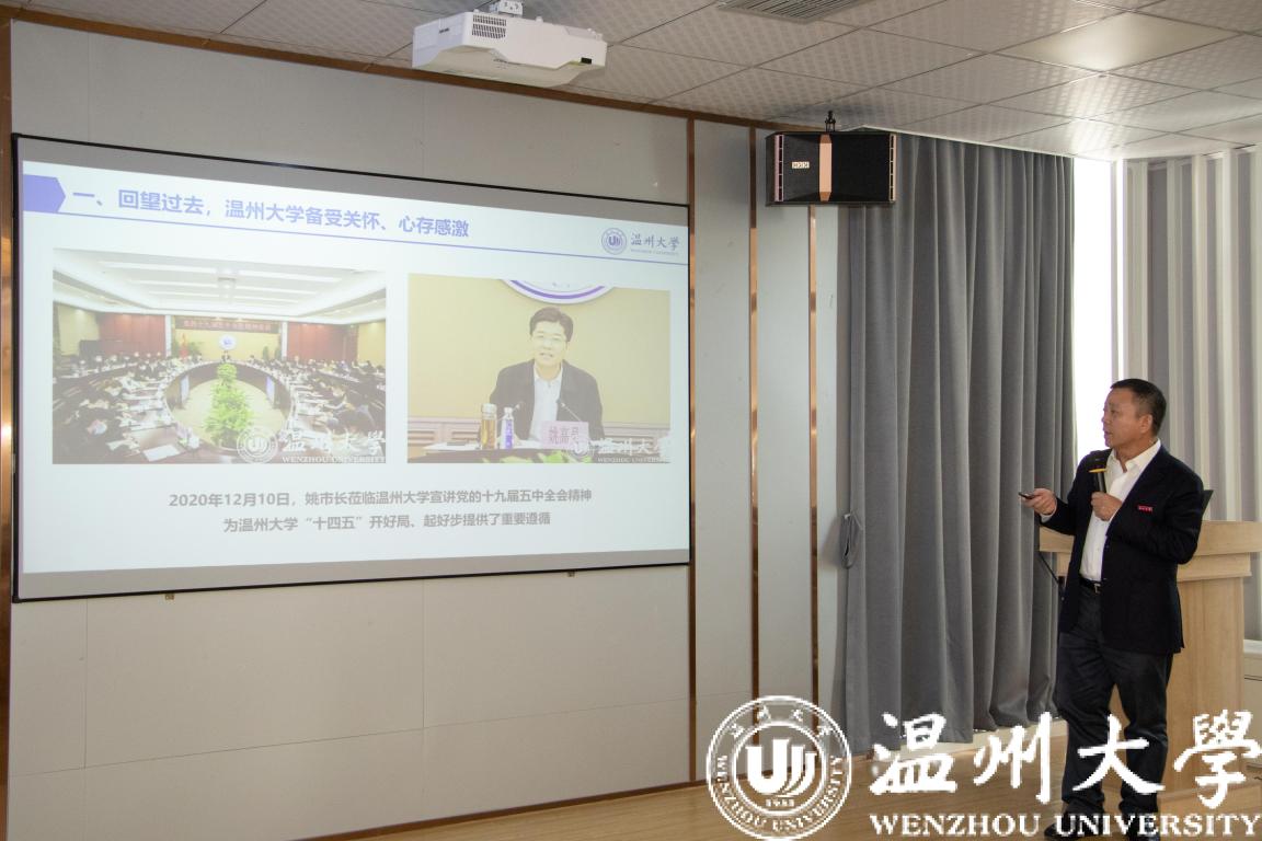校党委书记谢树华作ac米兰官网中文网站建设发展情况汇报。谢树华指出,在市委市政府的坚强领导下,ac米兰官网中文网站事业发展一年一个新台阶,实现了办学规模、办学层次、办学水平的全面提升。学校人才培养取得新成效,队伍建设孕育新动能,学科科研实现新突破,服务地方彰显新担当,综合实力迈上新台阶,班子建设激发新活力。谢树华进一步指出,展望未来,ac米兰官网中文网站已经进入大有可为的发展新阶段。站在新起点,ac米兰官网中文网站一定会发挥越来越重要的作用,占有越来越重要的位置,学校定将不负重托,为温州经济社会高质量发展作出新的更大贡献。