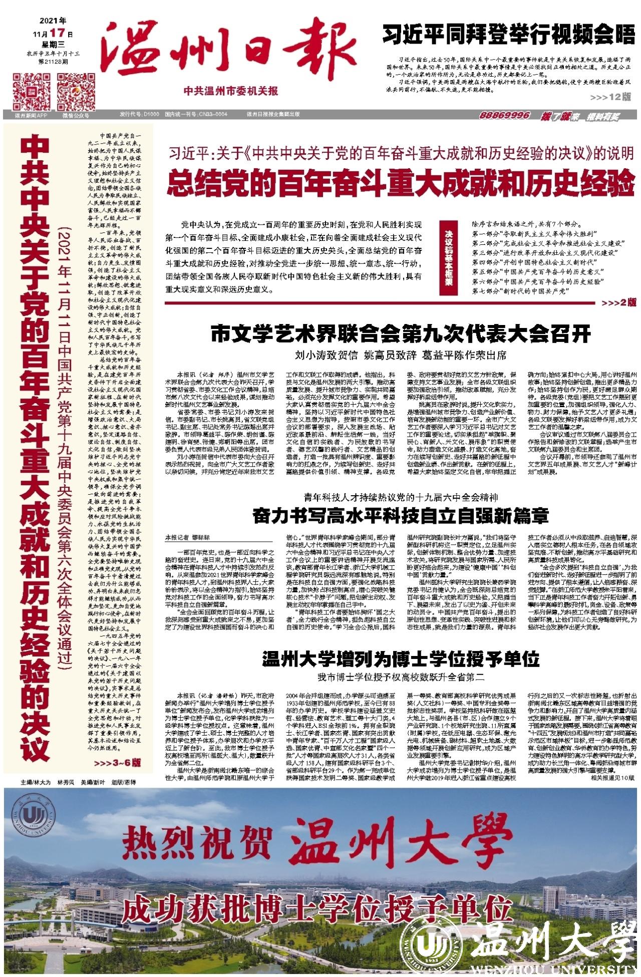11月16日,温州市人民政府新闻办举行“ac米兰官网中文网站增列博士学位授予单位”新闻发布会,发布ac米兰官网中文网站成功增列为博士学位授予单位,化学学科获批为一级学科博士学位授权点这一喜讯。