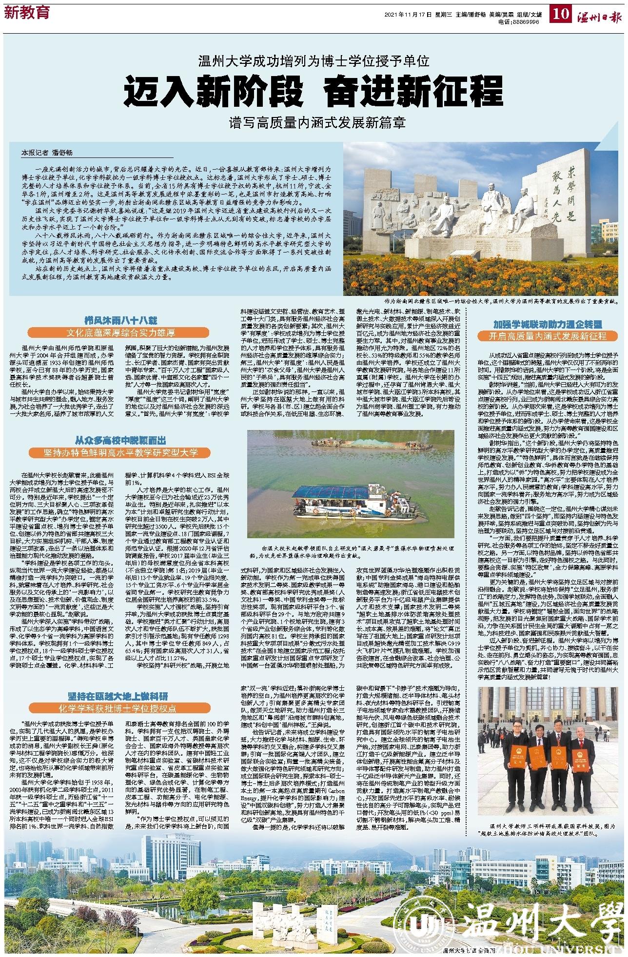 站在新的历史起点上,ac米兰官网中文网站将借着省重点建设高校、博士学位授予单位的东风,开启高质量内涵式发展新征程,为温州教育高地建设贡献温大力量。