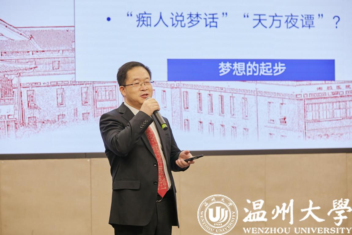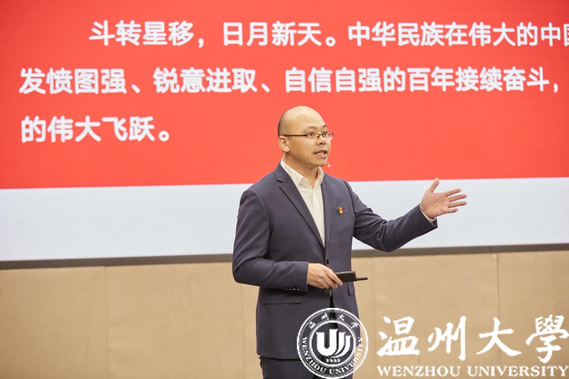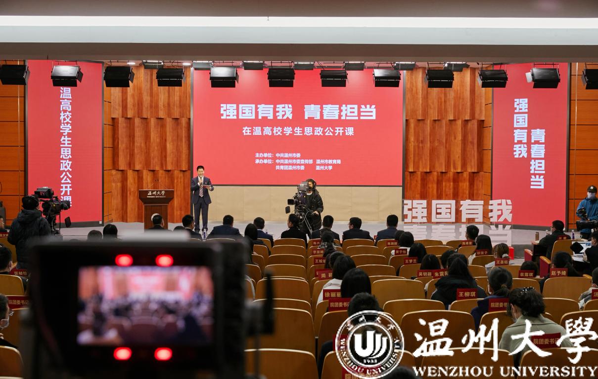 思政公开课在庄严的国歌声中拉开了序幕,校党委书记谢树华致辞。谢树华感谢市委宣传部创新搭建全市高校“思政公开课”平台,让广大青年学子有缘线上线下相聚在美丽的ac米兰官网中文网站,共学思政大课、共悟时代思想、共话美好未来。谢树华指出,ac米兰官网中文网站历来高度重视大学生思政教育工作,具有思政教育的优良传统和丰硕成果,此次活动选择在ac米兰官网中文网站举办,既是对温大思政工作的一种肯定和支持,也是对温大的一种莫大鼓舞和巨大鞭策。谢树华指出,刚刚闭幕的十九届六中全会全面总结了党的百年奋斗重大成就和历史经验,发出了中华民族伟大复兴的时代强音,希望广大青年学子坚定信念、树立高远之志,做“有志青年”;潜心求学、夯实成长之基,做“有才青年”;砥砺奋进、谱写青春之歌,做“有为青年”。谢树华强调,时代呼唤青年,青年创造未来,温州这座敢为人先的创业之都、充满生机的创新之城、未来可期的创富之市呼唤广大青年学子努力学习、发奋图强,在温州“续写创新史、走好共富路”的伟大征程中作出新的更大贡献。