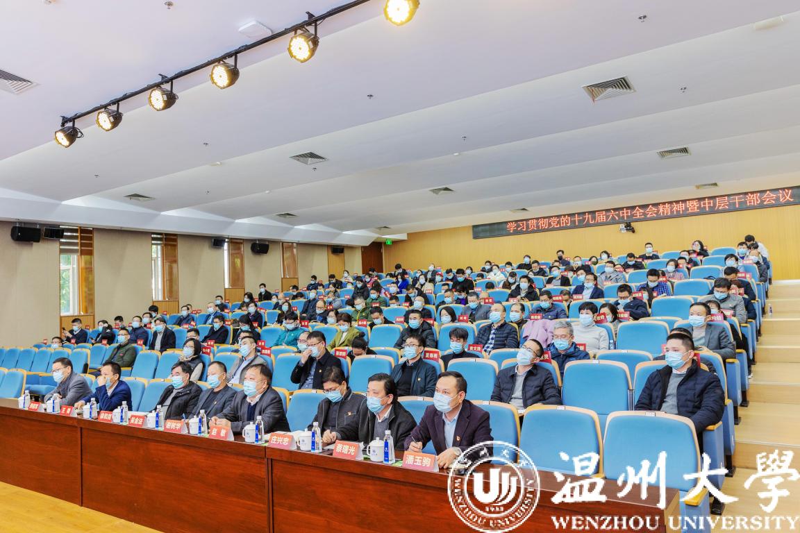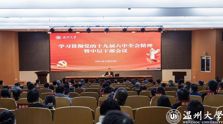 12月22日下午,ac米兰召开学习贯彻党的十九届六中全会精神暨中层干部会议,全体校领导出席会议。