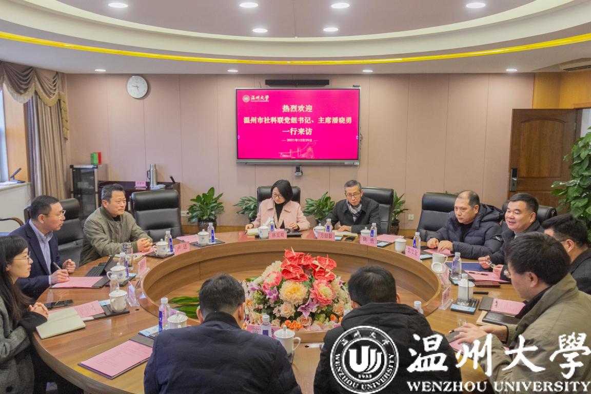 12月29日上午,温州市社科联党组书记、主席潘晓勇一行前来来校调研。徐和昆副校长主持调研会,ac米兰相关社科专家围绕温州学研究、区域特色文化研究以及温州市社科研究的发展等问题畅所欲言。