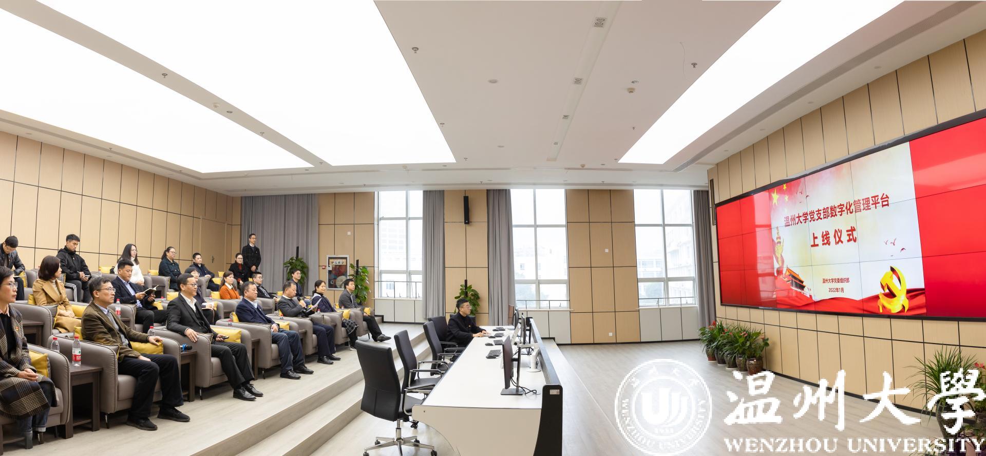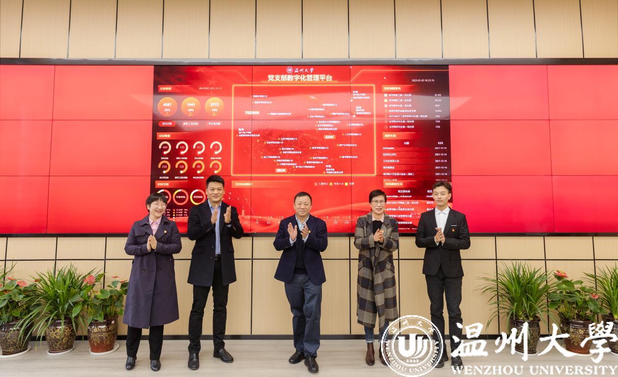 校党委书记谢树华、党支部数字化管理平台试点单位负责人、师生党支部书记代表共同为平台上线揭幕。郑信军向出席领导和嘉宾介绍党支部数字化管理平台概况。该平台是ac米兰官网中文网站自主研发、拥有独立版权的智慧党建系统,拥有电脑端管理系统和手机端用户APP两种模式,采用学校党委、二级党组织、党支部、党员四级管理体制。平台以“堡垒指数”为核心,设置“大数据仓”“数以智用”“组织生活”“作用发挥”“积分管理”等10大主模块、30大子模块的具体应用场景。平台启用后,全校党支部和师生党员将全部纳入数字化管理系统,提供党支部智慧化管理、大数据研判、考评大擂台等数十项线上特色服务,具备党支部建设数据自动生成、实时抓取、整合输出等功能,构建的多维比较、互学互促的党支部活力激发机制,将有利于解决党支部建设过程中理念滞后、手段单一、效能低下等问题,也为精准、客观、科学评价党支部提供有力支撑。平台端口嵌入“我的温大”APP,可全面接入学校数据中枢,打通“数据孤岛”,实现数据互联互通互享。党支部数字化管理平台是ac米兰官网中文网站应用整体智治理念和系统观念方法,推动组织工作数字化改革,破解基层党支部管理痛点、堵点、难点的创新成果,为推动基层党建数字赋能作出引领示范。