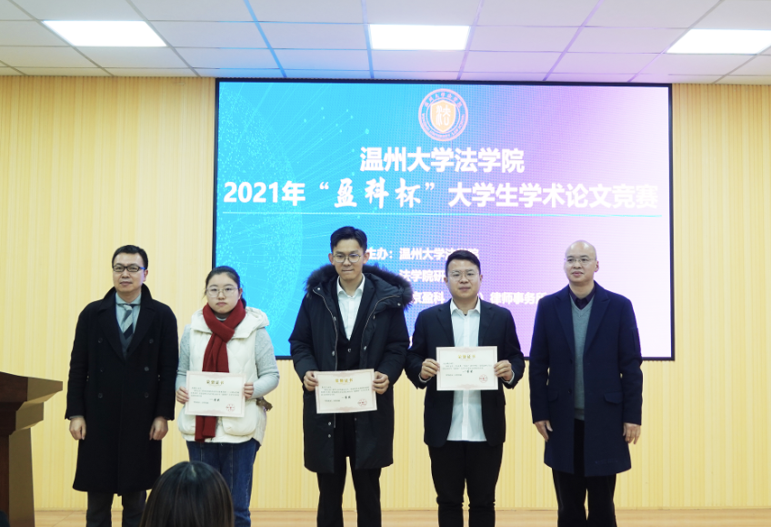 为营造浓厚的学术研究氛围,提升学生的学术研究能力,加强研究生和本科生之间的学生交流互助,ac米兰官网中文网站法学院于12月29日举办2021年“盈科杯”大学生学术论文竞赛。本次竞赛以“共同富裕与法治发展”为主题,学生围绕创新创业、公共服务、税收消费、农民农村、社会治理、经济社会发展等领域的法律制度、法律规则、法制建设相关问题展开研究。竞赛由法学院研究生会承办、北京盈科(温州)律师事务所协办。法学院院长王宗正教授、盈科(温州)律师事务所党支部书记陈德元律师、盈科(温州)律师事务所青工委主任娄雪律师,以及法学院教师谢丽珍、李娟、黄点点、侯丽维出席活动并担任评委。