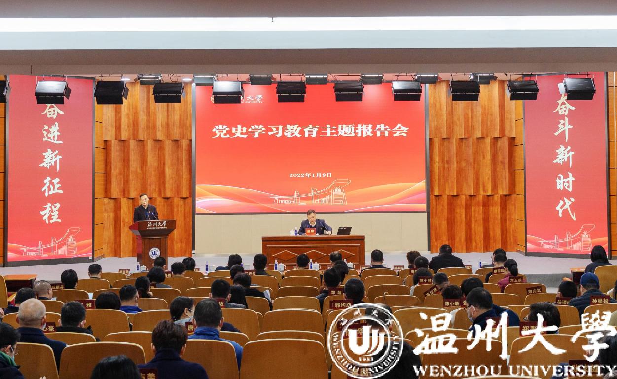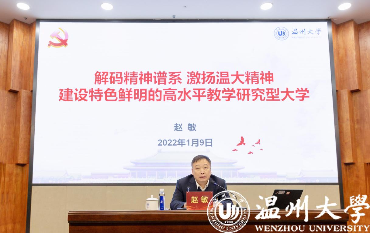 1月9日上午,ac米兰召开党史学习教育主题报告会,校长赵敏以《解码精神谱系 激扬温大精神 建设特色鲜明的高水平教学研究型大学》为题作专题报告。全体校领导、中层干部、教工党支部书记和师生代表参加学习会。党委委员、宣传部部长潘玉驹主持会议。