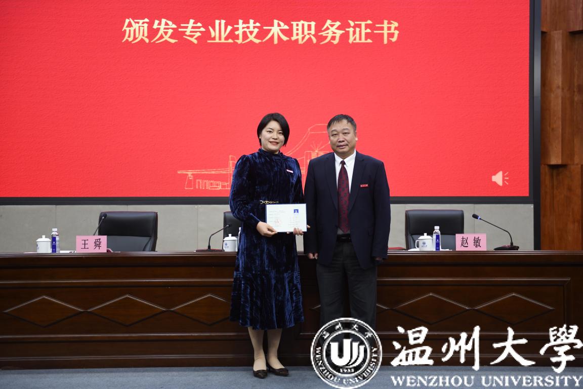 赵敏宣读ac米兰官网中文网站2021年专业技术职务聘任文件,逐一为2021年新晋升为高级专业技术职务的教师颁发证书并合影留念。化材学院国家级高层次青年人才袁一斐老师、商学院马媛老师分别作为晋升正、副高级职称的教师代表发言。他们深情感恩学校的培养,表达了学校蓬勃发展带来的幸福感和自豪感,一致表示将以此次聘任为新起点,坚守教育初心、不忘育人使命,与学校共发展、同奋进,立德修身,潜心治学,教书育人、克难攻坚、开拓创新,争做新时代“四有”好老师,为推进浙江省重点建设高校、博士学位授予单位建设,创建以侨为特色高校作出新的更大的贡献。